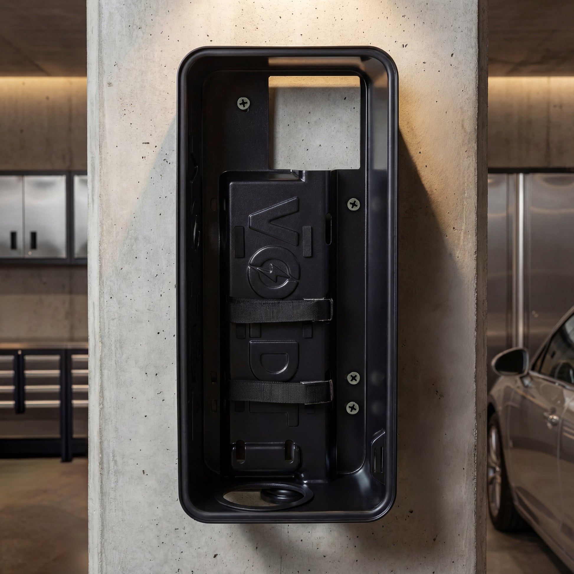 Das Voldt® Boxx Original ist eine innovative Lösung, mit der Sie ein mobiles Ladekabel ganz einfach in eine feste Ladestation verwandeln können. So müssen Sie sich nicht mehr mit einem losen, oft schmutzigen Ladekabel herumschlagen. Der EVshield ist schnell und ohne Installateur zu installieren und dank seines robusten Gehäuses aus recyceltem Material und der Magnelis®-Stahlfrontplatte witterungsbeständig - ideal für den Außeneinsatz.
